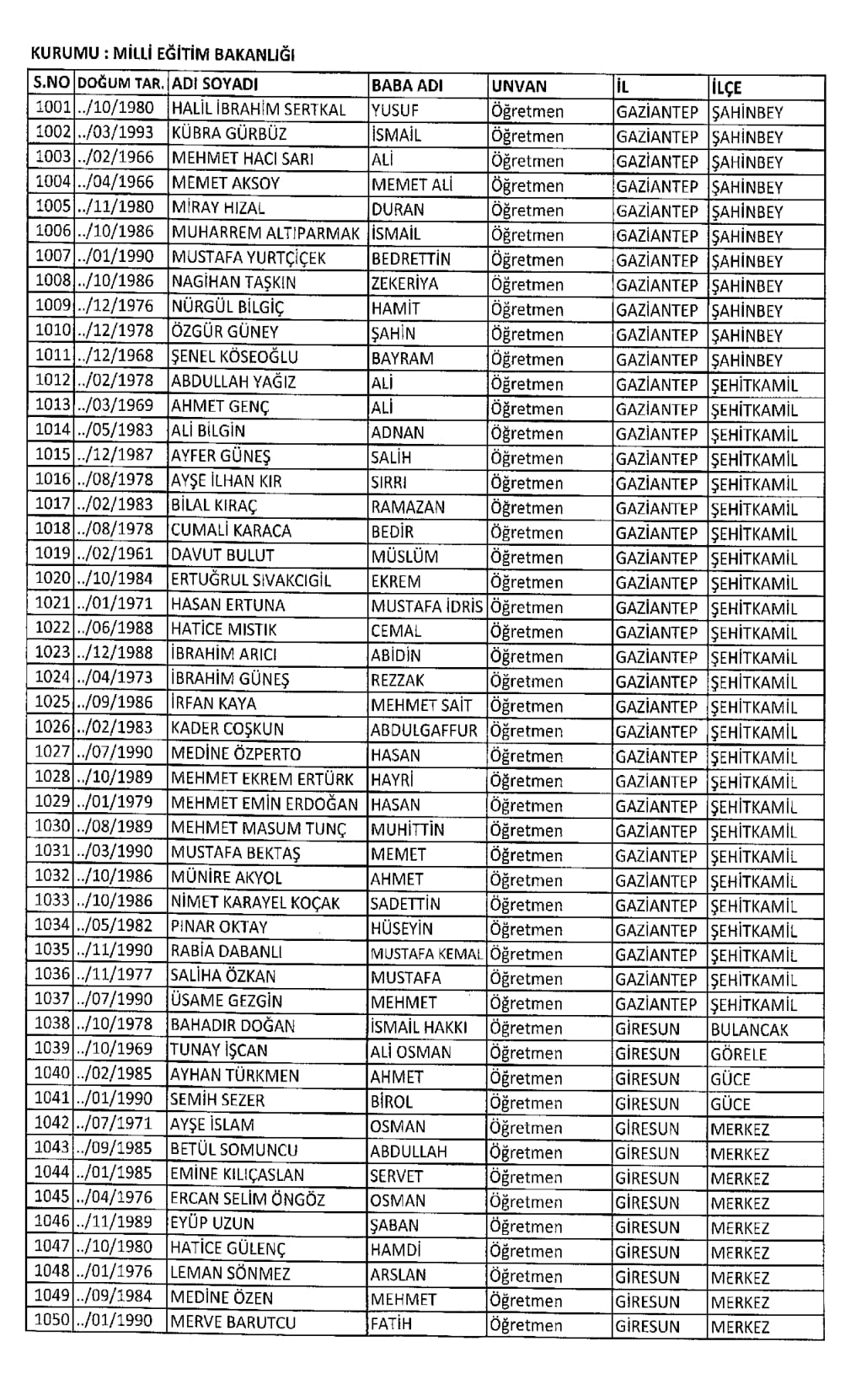 RESMİ İLANLAR