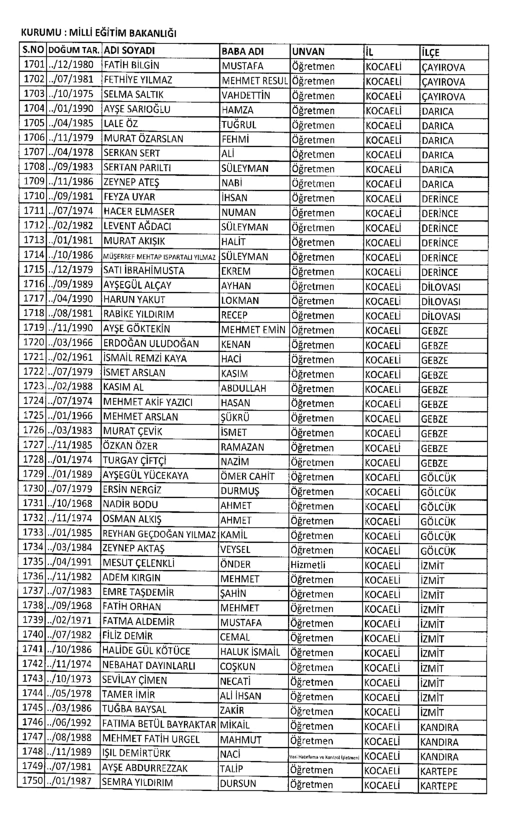 RESMİ İLANLAR