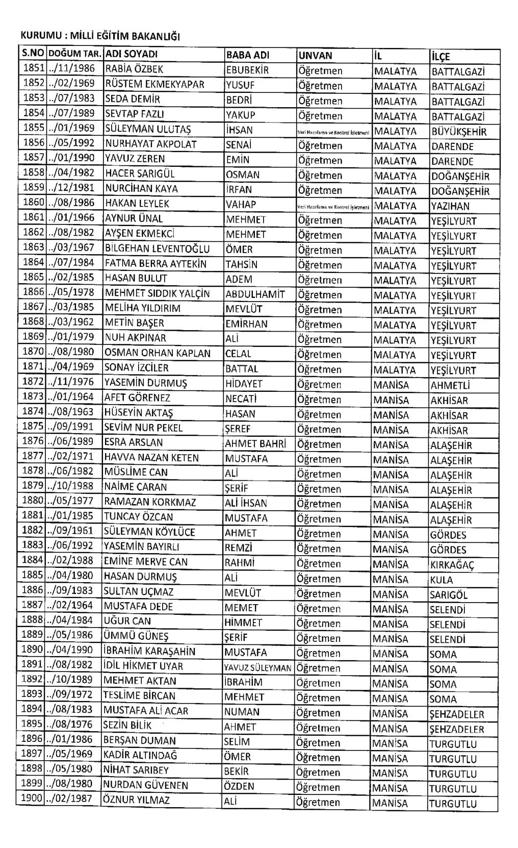 RESMİ İLANLAR