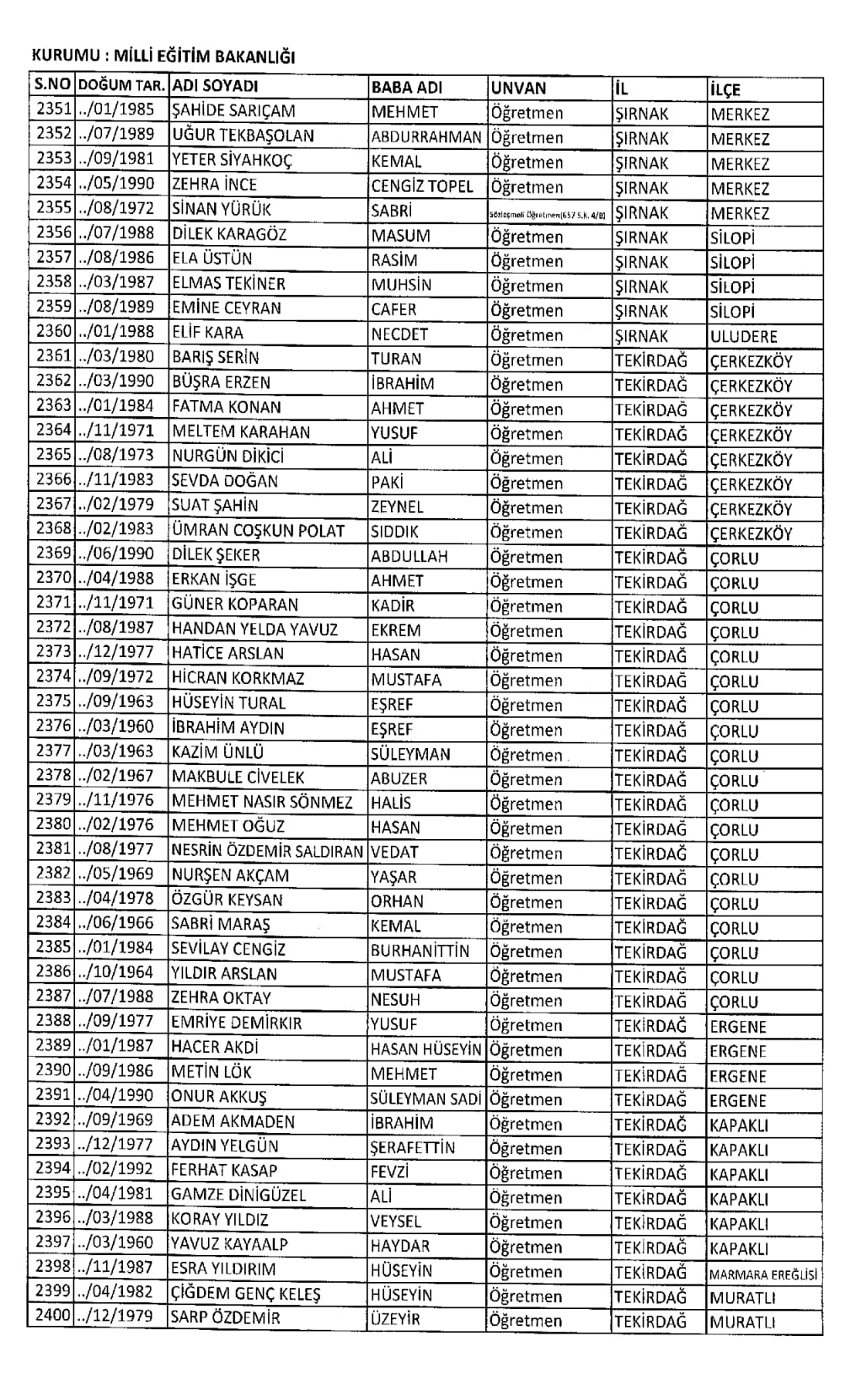 RESMİ İLANLAR