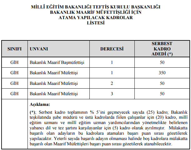 – Aylıktan kesme, benzeri ve üstü disiplin cezası almış olanlar, Bakanlık Maarif Müfettişliği mülakatına başvuramazlar.