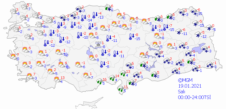 Meteoroloji Genel Müdürlüğünden yapılan açıklamaya göre, bugün akşam saatlerinden sonra Kilis’in yüksek kesimleri ve Gaziantep çevreleri, gece saatlerinden sonra Diyarbakır çevreleri, Bingöl, Ağrı, Van merkezi ve kuzey çevreleri, Mardin’in kuzeyi, Şanlıurfa, Siirt ve Batman’ın ise yükseklerinde kuvvetli kar yağışı bekleniyor. Kar yağışlarının yarın öğle saatlerinden itibaren Güneydoğu Anadolu’nun batısından başlayarak gün sonunda etkisini kaybedeceği tahmin ediliyor.