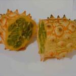 Boynuzlu Kavun-Afrika salatalığı-Horned MelonAfrika salatalığı olarak da bilinen kavun, yılda bir kere meyve veren bir asma türüdür. Afrika anavatanıdır ama Kaliforniya, Avustralya, Yeni Zellanda ve Şili’de de bulunur. Olgunlaştığında kalın sivri kabuğu oluşur. Eti parlak yeşil, jöle kıvamındadır. Tadı muza benzesede de çekirdekleri bakımından domates ve salatalığı andırır. Sivri çıkıntılı kabuğu yenebilir, C vitamini ve lif bakımından zengindir.