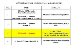 Sağlık Bakanlığı, Devlet Personel Başkanlığı aracılığıyla bir ilan yayımladı. 2017 Yılı İlk Defa ve Yeniden Atama Kurası İlan metni şu şekilde;